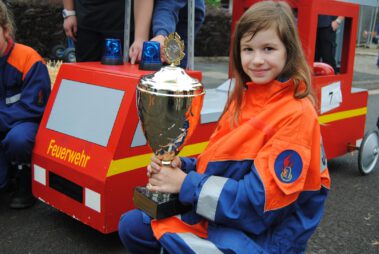 Um 16.30 Uhr war dann der sechste und letzte Wertungslauf beendet. Margarita Stamati und Karsten Perner werteten alle Zeiten der Abfahrten aus – wie knapp es letztendlich gewesen ist entnehmen Sie der beigefügten Auflistung. Zu der Siegerehrung kamen der stellvertretende Bürgermeister Egon Schewe sowie der 2. stellvertretende Leiter der Feuerwehr Löhne Dirk Rabeneck. Beide überreichten gemeinsam mit Torsten Stürzebecher die Teilnehmerurkunden sowie Pokale für die drei Erstplatzierten. Für alle Teilnehmer war die Veranstaltung ein voller Erfolg, und der Termin für 2017 kann bereits vorgemerkt werden. Bis zum 16.09.2017 haben Gruppen und Einzelstarter die Möglichkeit ihre Rennpappe auf Vordermann zu bringen und um den begehrten Wanderpokal zu fahren.