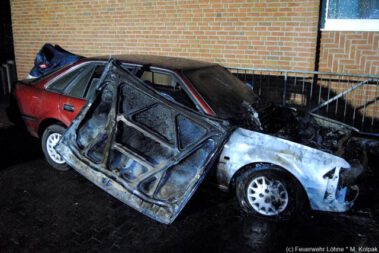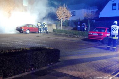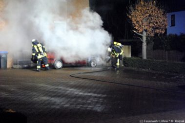 Die Feuerwehr Löhne wurde am 11.01.2017 gegen 23.50 Uhr zu einem PKW-Brand in der Straße „Auf der Bülte“ gerufen. Bei Eintreffen der ersten Einheit stellten die Einsattkräfte einen entwickelten Brand im vorderen Bereich des Fahrzeugs.