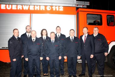 Damit einher ging auch die Zusammenlegung der einzelnen Jugendgruppen zur neuen Jugendfeuerwehr des Löschzugs. Dem neu aufgestellten Führungsteam um Löschzugführer Reinhard Sieker, den beiden stellv. Löschzugführern Dominik Meier und Oliver Seidel sowie dem Jugendwart Mathias Petermann und Stellvertreterin Annemarie Coring überreichte Krause Ihre Ernennungsurkunden. Gleichzeitig bedankte sich Krause bei dem scheidenden stellv. Löschgruppenführer Oliver Schnier sowie den scheidenden stellv. Jugendwarten Mirko Brinkmann und Philipp Coring für ihre langjährige geleistete Arbeit.