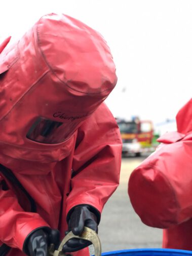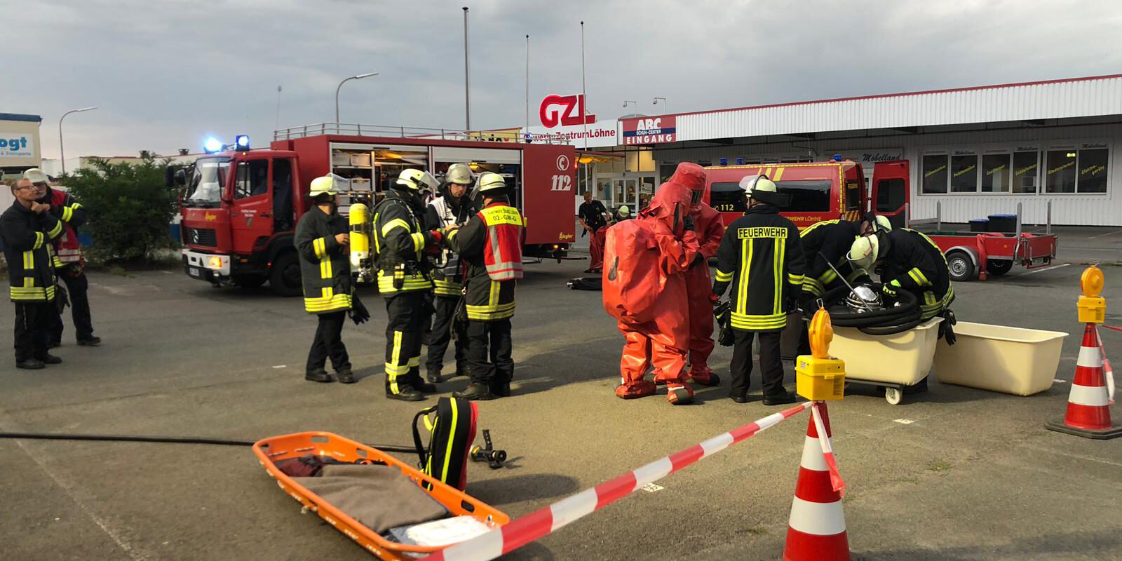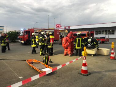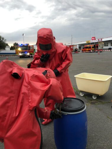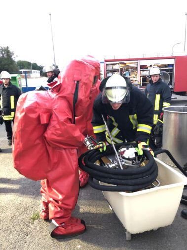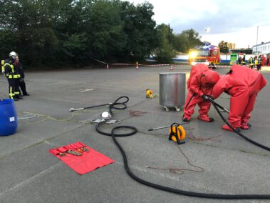 Bei der Feuerwehr Löhne geht es nicht nur um Brandbekämpfung und Technische Hilfe bei Verkehrsunfällen. Die Löschgruppe Löhne-Bahnhof führte am gestrigen Dienstabend eine Gefahrgutübung durch. Hierbei sollten sowohl das Einsatzkonzept, als auch das Umpumpen von Gefahrstoffen unter Chemikalienschutzanzug geübt werden. Mit den neu gewonnenen Erkenntnissen zeigte sich die Gruppe nach dieser „Materialschlacht“ zufrieden.