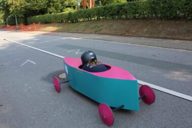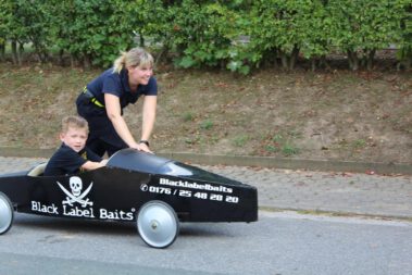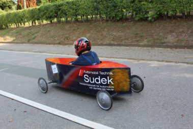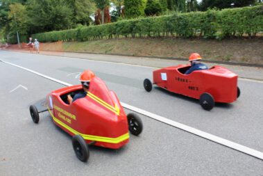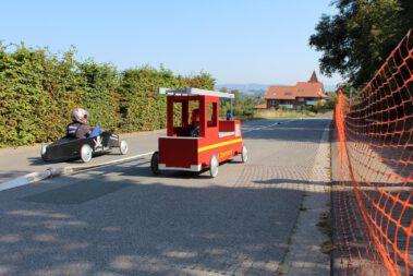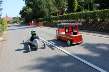 Sogar einige Betreuer der Jugendfeuerwehren ließen sich eine Fahrt in der Seifenkiste nicht nehmen.