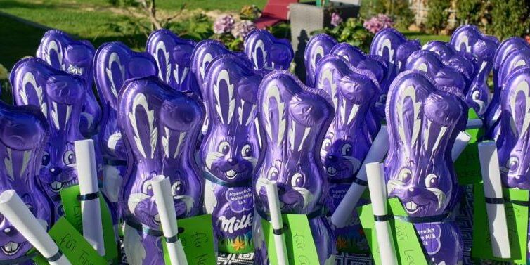 Der Osterhase hat „natürlich kontaktlos“ über Nacht jedem etwas vorbei gebracht.
