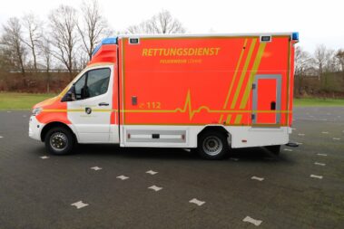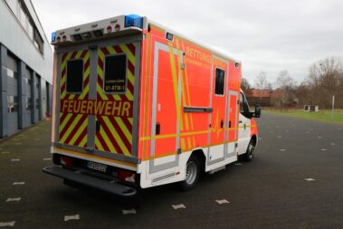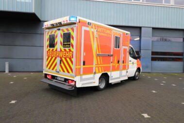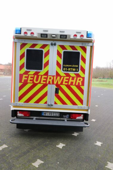 Die Feuerwehr Löhne geht mit diesem Rettungswagen einen neuen Weg, da die Fahrzeuge nun ergonomischer und rückenschonender für das Personal im Rettungsdienst sowie die zu transportierenden Patienten werden. Daher wurde die Ausschreibung für das am 21.12.2020 in Dienst gestellte Fahrzeug komplett überarbeitet.
