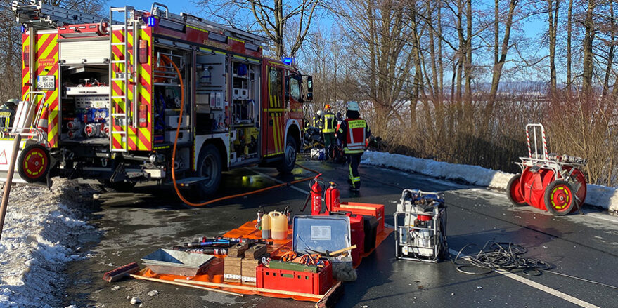 Zu einem Verkehrsunfall wurde heute Nachmittag die Feuerwehr Löhne alarmiert. Da sich die Unfallstelle in unmittelbarer Nähe zur Stadtgrenze zu Hüllhorst befand, war die Feuerwehr Hüllhorst ebenfalls vor Ort. Gemeinsam wurden zwei Personen aus einem Fahrzeug befreit. Insgesamt vier Personen mussten verletzt in Krankenhäuser transportiert werden. Aus Löhne waren die Kräfte der Feuer- und Rettungswache sowie der Einheiten Mennighüffen, Obernbeck und Löhne-Ort im Einsatz.