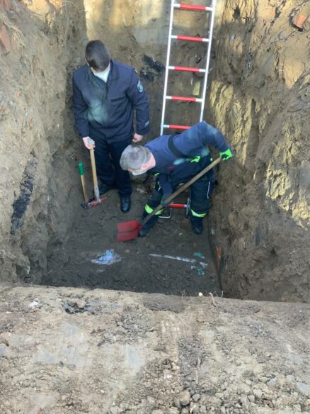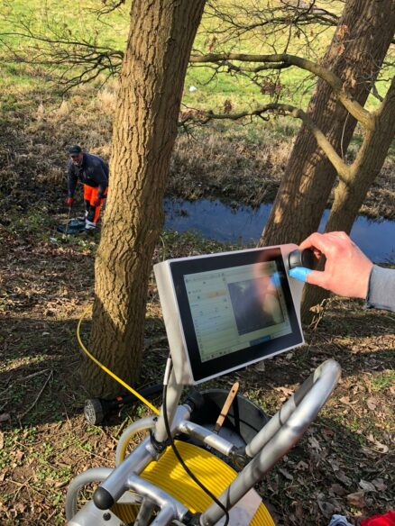 Somit wurde kurzer Hand bei den Stadtwerken Löhne um Unterstützung gebeten, welche prommt in Form einer „Kanalratte“ und eines Bagger folgte. So konnte der Ausreißer letztendlich ca. 15 Meter nach dem Zugang zum Rohr geortet und befreit werden. Der Hund wurde wohlbehalten an die Eigentümer übergeben.