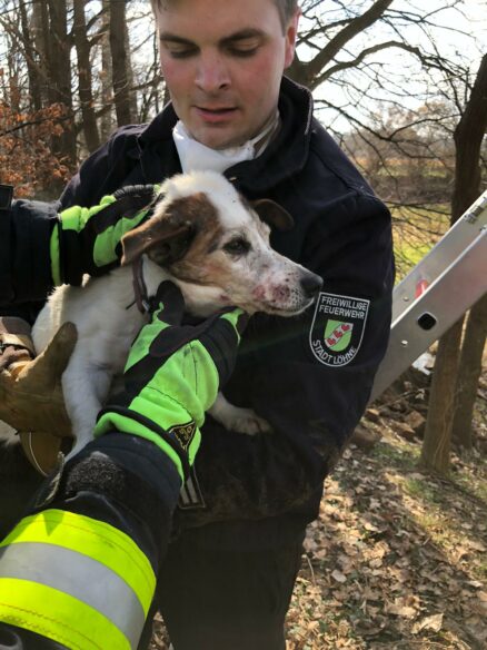 Ein Jack-Russel-Terrier war gestern Abend in ein stillgelegtes Abwasserrohr gelaufen. Leider zerschlug sich die Hoffnung der Besitzer, dass er sich über Nacht selbst befreien könnte, so dass die Feuerwehr zur Hilfe gerufen wurde. Mittels eines Laser-Entfernungsmessers wurde versucht, das Tier in dem Rohr zu orten, was jedoch nicht sehr gut funktionierte.