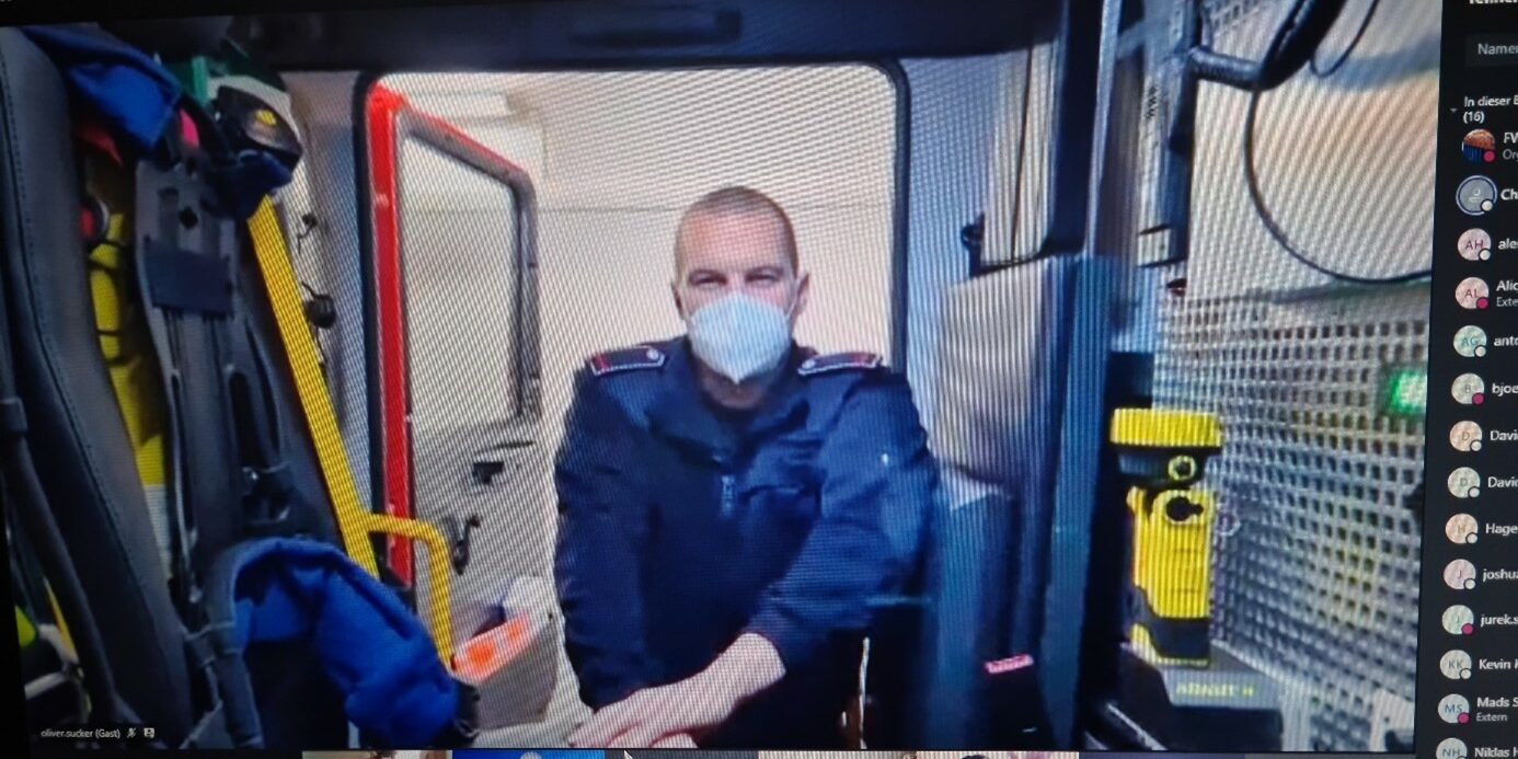Wie kann ein Dienst Online trotzdem spannend und nicht zu „Trocken“ ablaufen? Das ist neben der Technik für alle Betreuer und Jugendwarte wohl die größte Herausforderung; also mussten wir auch da kreativ werden. Wenn die Jugendlichen schon nicht zu den Fahrzeugen auf die Wachen kommen dürfen, dann bringen wir diese einfach auf die Bildschirme der Jugendlichen direkt nach Hause, per Live-Übertragung aus den Gerätehäusern.