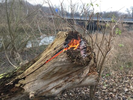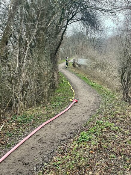 Bereits zum zweiten Mal musste die Feuerwehr Löhne heute zu einem gemeldeten Feuer ausrücken. Gegen 15 Uhr wurde die hauptamtliche Wache auf die Autobahn auf Höhe der Werrebrücke alarmiert. Dort brannte ein Baumstumpf.