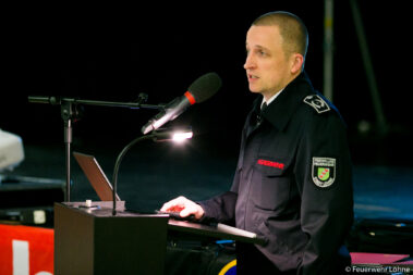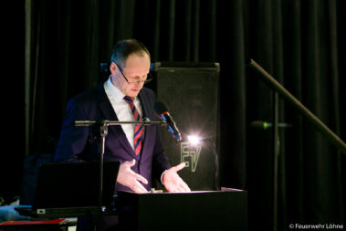 Am vermutlich sichersten Ort in Löhne eröffnete der Leiter der Feuerwehr Löhne, Ralf Krause, die Jahresarbeitstagung 2018 und führte die Anwesenden durch ein ereignisreiches Jahr 2017.