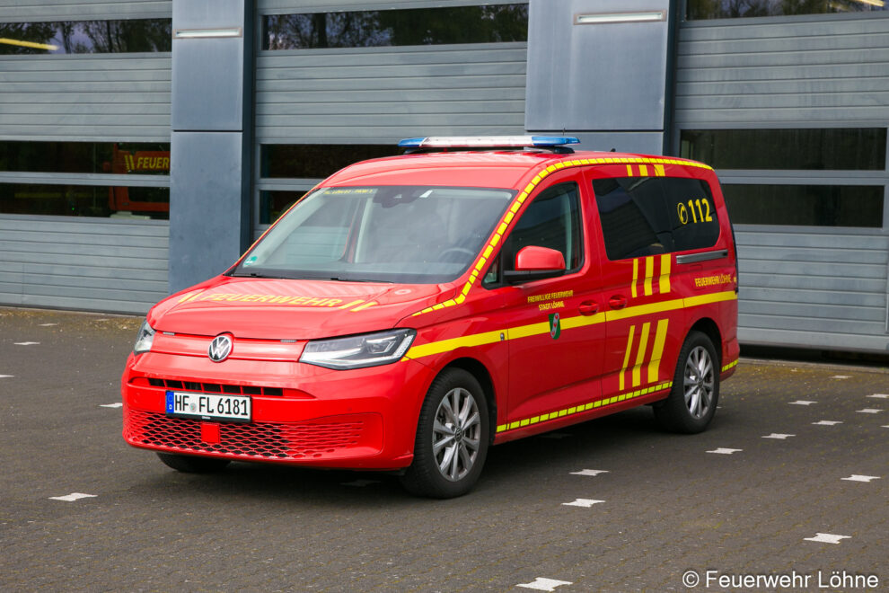 Personenkraftwagen (PKW)Steckbrief: Bezeichnung: PKW Baujahr: 2023 Funkrufname: Florian Löhne-01 PKW-1 Kennzeichen: HF-FL-6181 Fahrgestell: Volkswagen Caddy Aufbauhersteller: Digitalfunk OWL Besatzung: 7 Auszug aus der Beladung: 2x Adalit Lampe 2x HRT Funkgerät 1x MRT Funkgerät