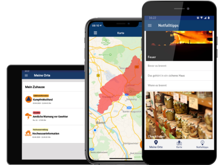 Mit der Notfall-Informations- und Nachrichten-App des Bundes, kurz Warn-App NINA, können Sie wichtige Warnmeldungen des Bevölkerungsschutzes für unterschiedliche Gefahrenlagen wie zum Beispiel Gefahrstoffausbreitung oder einem Großbrand erhalten. Optional auch für Ihren aktuellen Standort. Wetterwarnungen des Deutschen Wetterdienstes und Hochwasserinformationen der zuständigen Stellen der Bundesländer sind ebenfalls in die Warn-App integriert.
